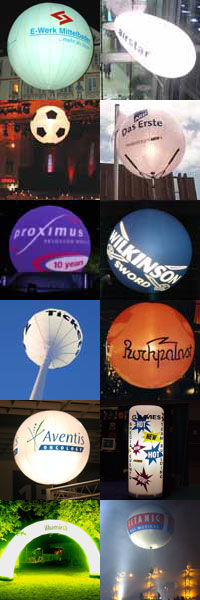 Viele unserer Produkte eignen sich in hervorragender Art und Weise für den Einsatz als leuchtende UND beleuchtende Werbeträger. Gerade unsere Leuchtballons sind ein konkurrenzloses, optisches Highlight!